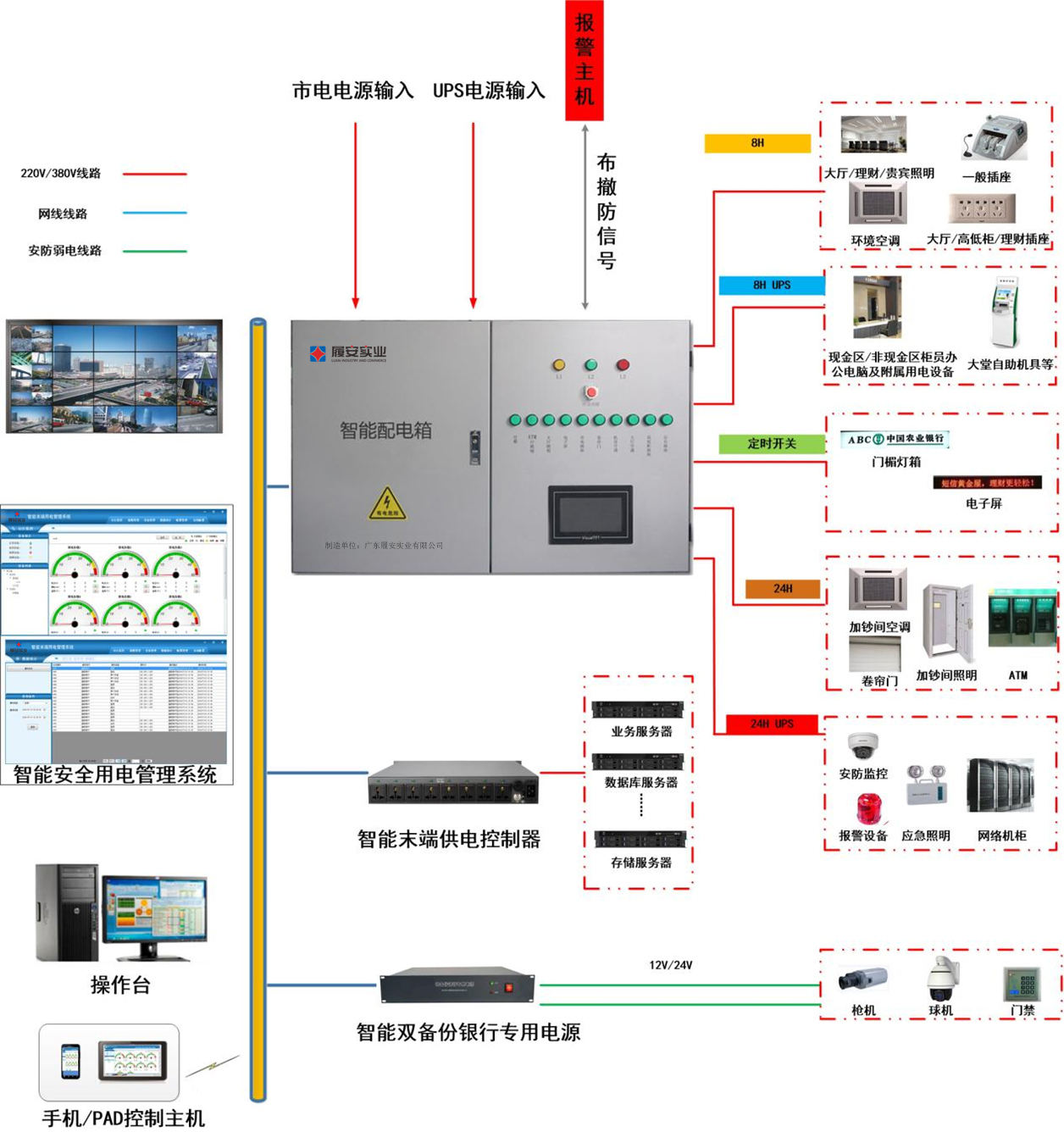 市电配电断电后,系统自动报警上传,值班人员及时结合网点视频监控及时复核,及时准确出警,减少现场出警复核次数的同时,也提高了网点的安全性。