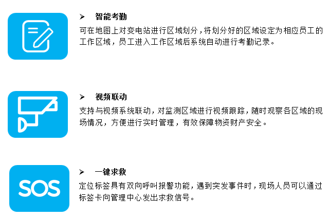 变电站UWB人员定位系统,在变电站内部署定位基站,通过零维、一维、二维、三维等多种定位模式,对佩戴定位标签的人员进行实时定位,为变电站提供厘米级的高精准定位服务,结合轨迹跟踪回放、电子围栏、智能巡检、视频联动、行为分析等多种智能化应用,有效提升变电站安全作业管控水平。